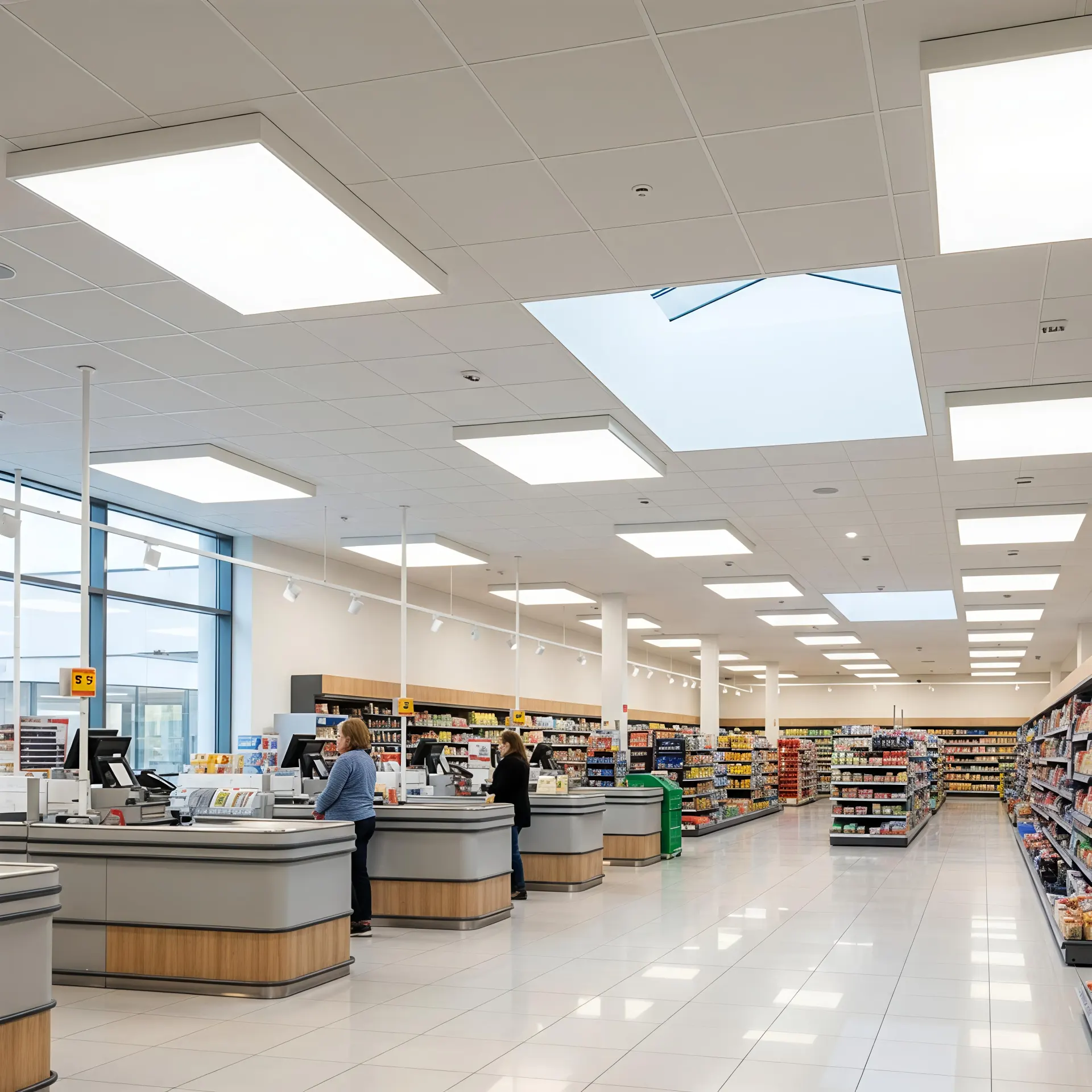 High-quality DALI panel lighting supports deep dimming (often below 1%) while maintaining flicker-free operation. This improves visual comfort for checkout staff and enhances barcode scanning accuracy, contributing to smoother daily operations.