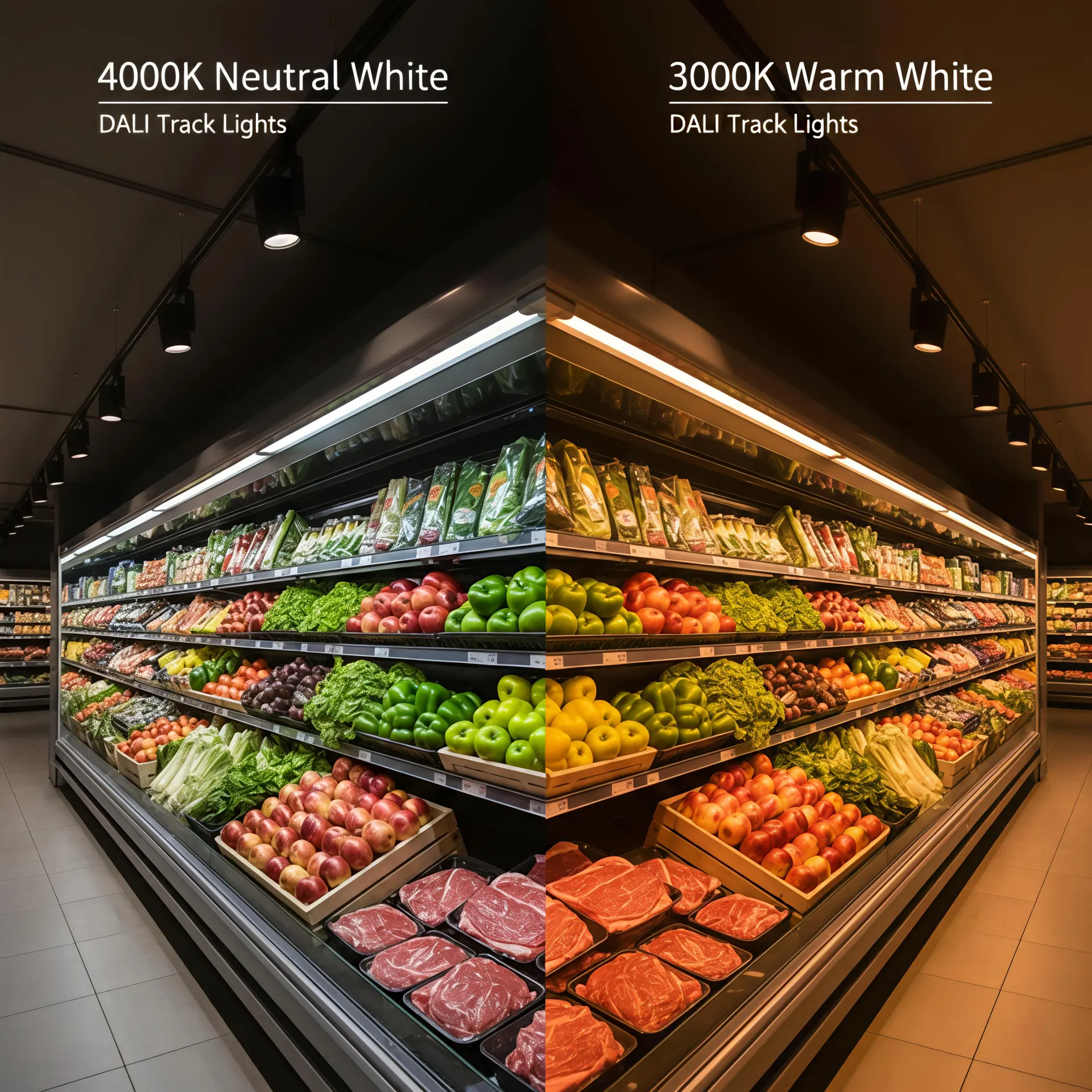 If linear lighting establishes the visual baseline, DALI Track Lights define focal points—especially in fresh food areas where color accuracy directly affects purchasing decisions.