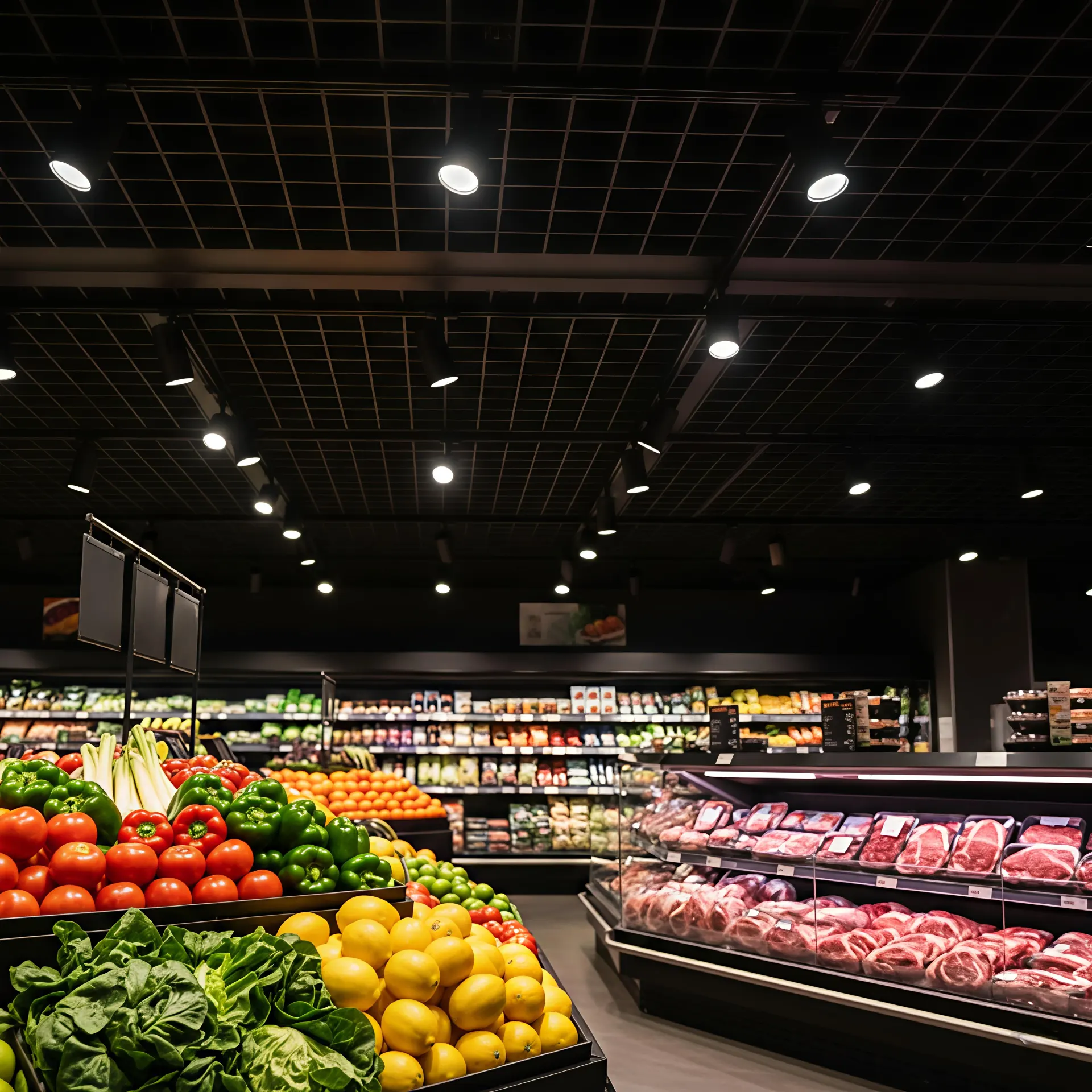 Traditional supermarket lighting typically applies the same brightness and color temperature across all areas. While functional, this approach ignores the fact that supermarkets are highly segmented environments with very different visual and commercial requirements.