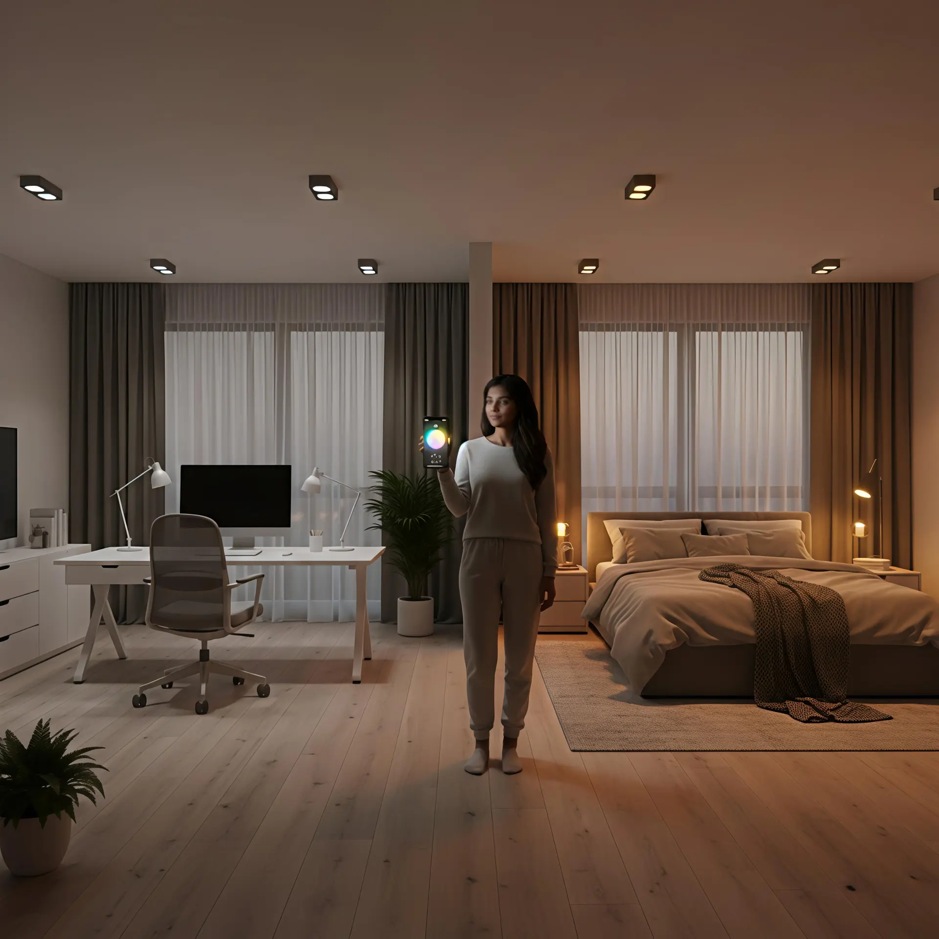 - AI Circadian Lighting: Automated adjustment of color temperature according to time of day and geographic location to support natural circadian rhythms.