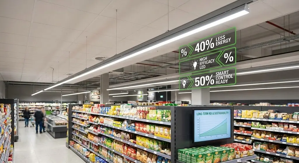 Supermarkets typically operate 12 to 18 hours per day, sometimes even longer in urban or high-traffic locations. Lighting systems must remain stable, uniform, and reliable throughout these hours, which makes inefficiency especially costly.