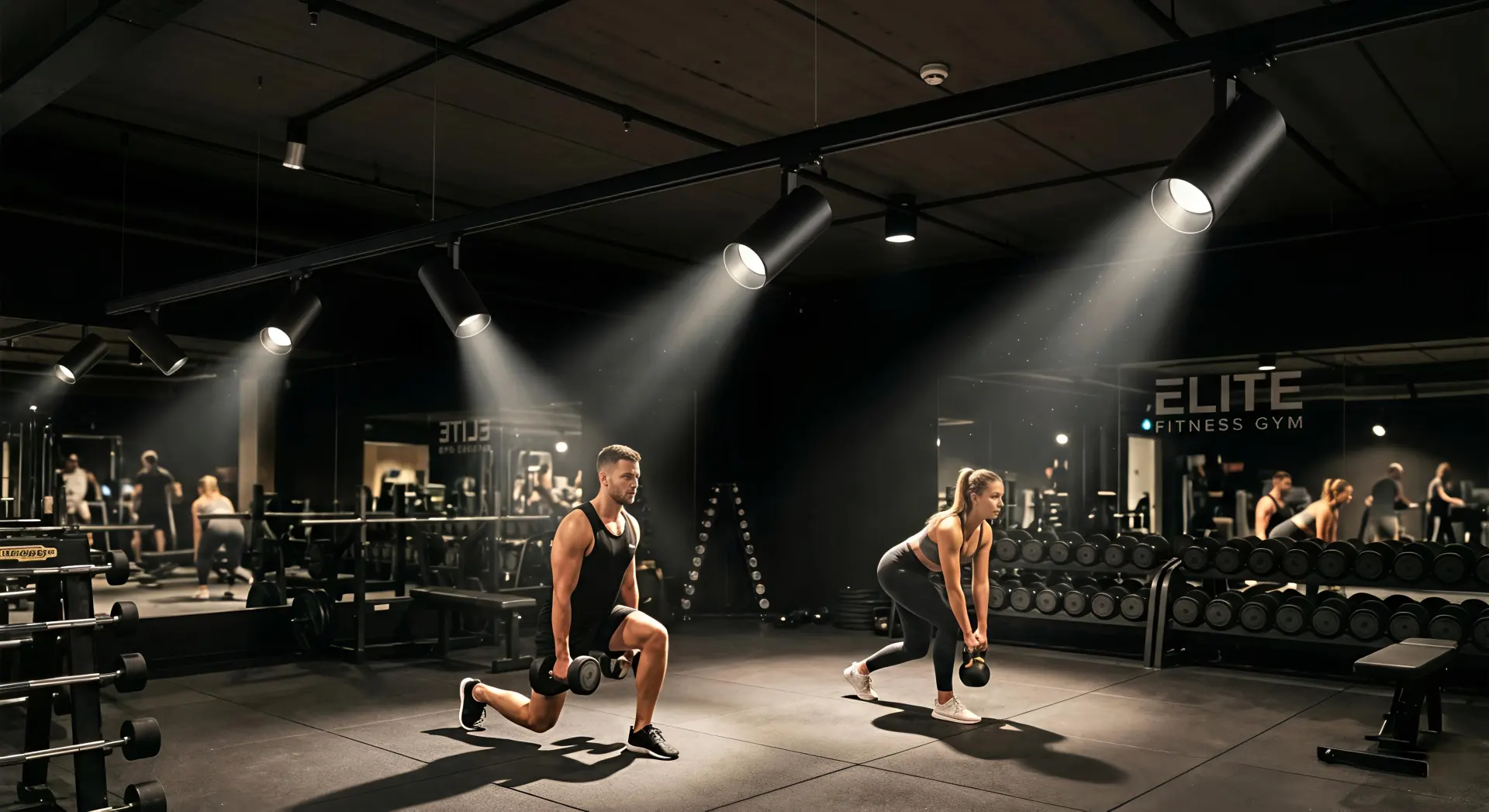 Track lights are one of the most versatile solutions for gym environments. Key advantages include: