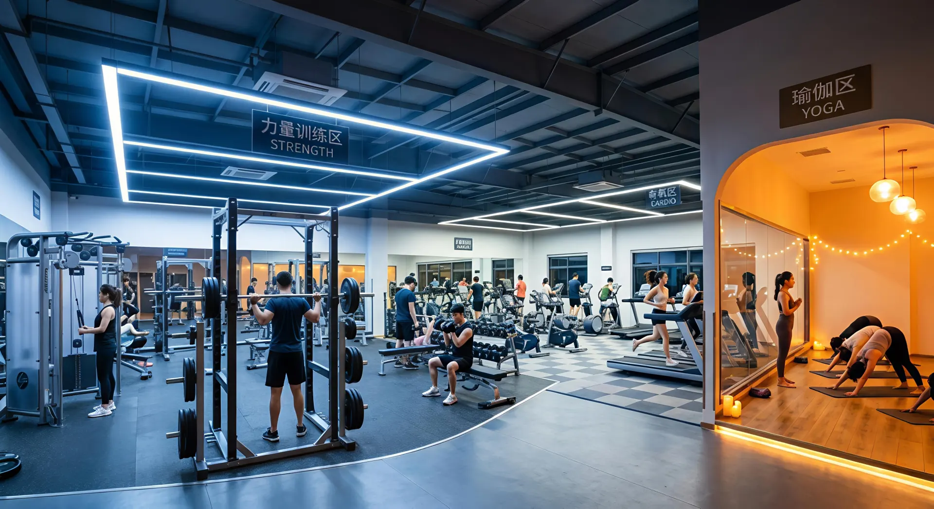 Here, lighting must adapt to different workouts: