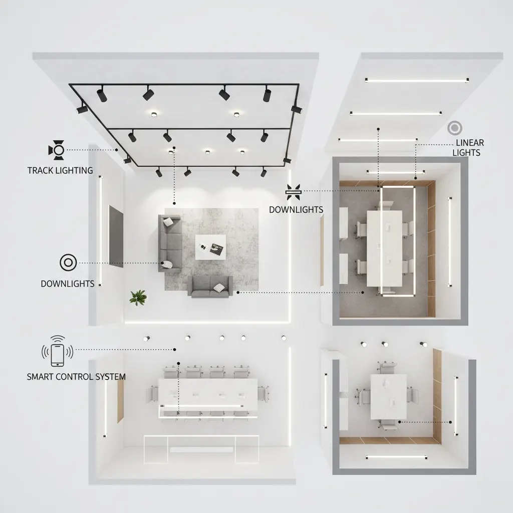 For large corridors, meeting areas, or shared commercial zones, smart linear lighting can be divided into control groups. Combined with occupancy sensors, only the areas in use are illuminated, supporting efficient energy management aligned with Australian commercial property standards.