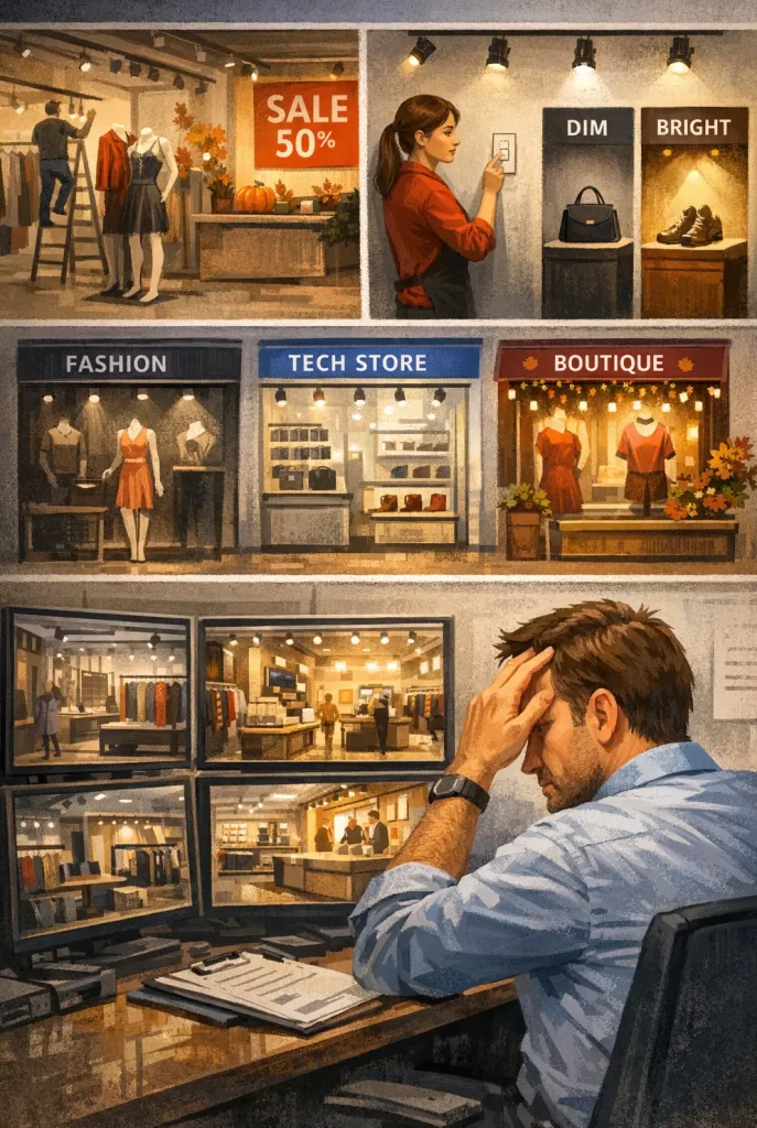 This becomes a much bigger challenge for businesses operating across multiple locations. When each store handles lighting differently, the brand experience becomes less consistent. At the same time, managers spend more time solving problems that should ideally be automated or centrally controlled.